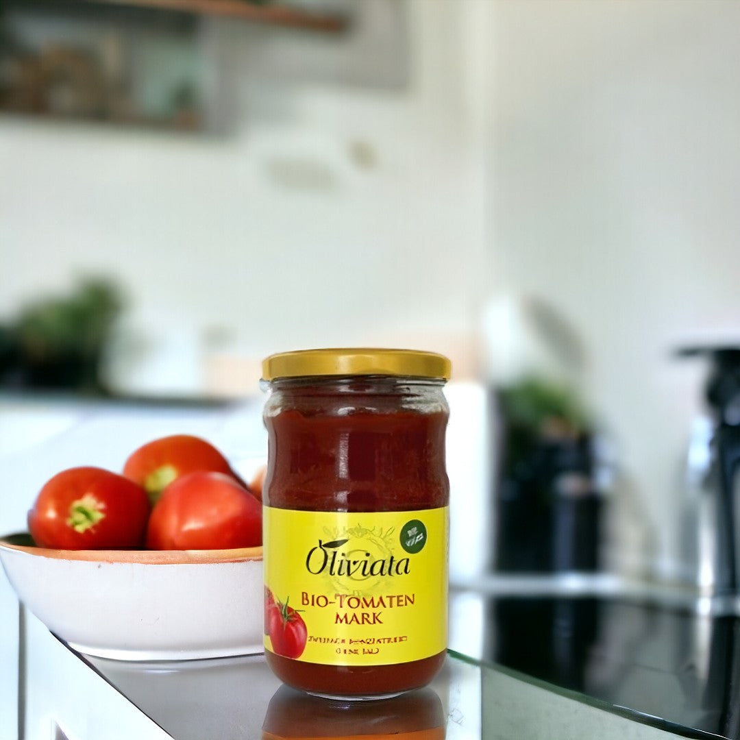 Mit unserem Oliviata Bio-Tomatenmark holst Du Dir das Aroma frischer Tomaten direkt in Deine Küche und gibst Deinen Gerichten eine authentische und geschmackvolle Note.